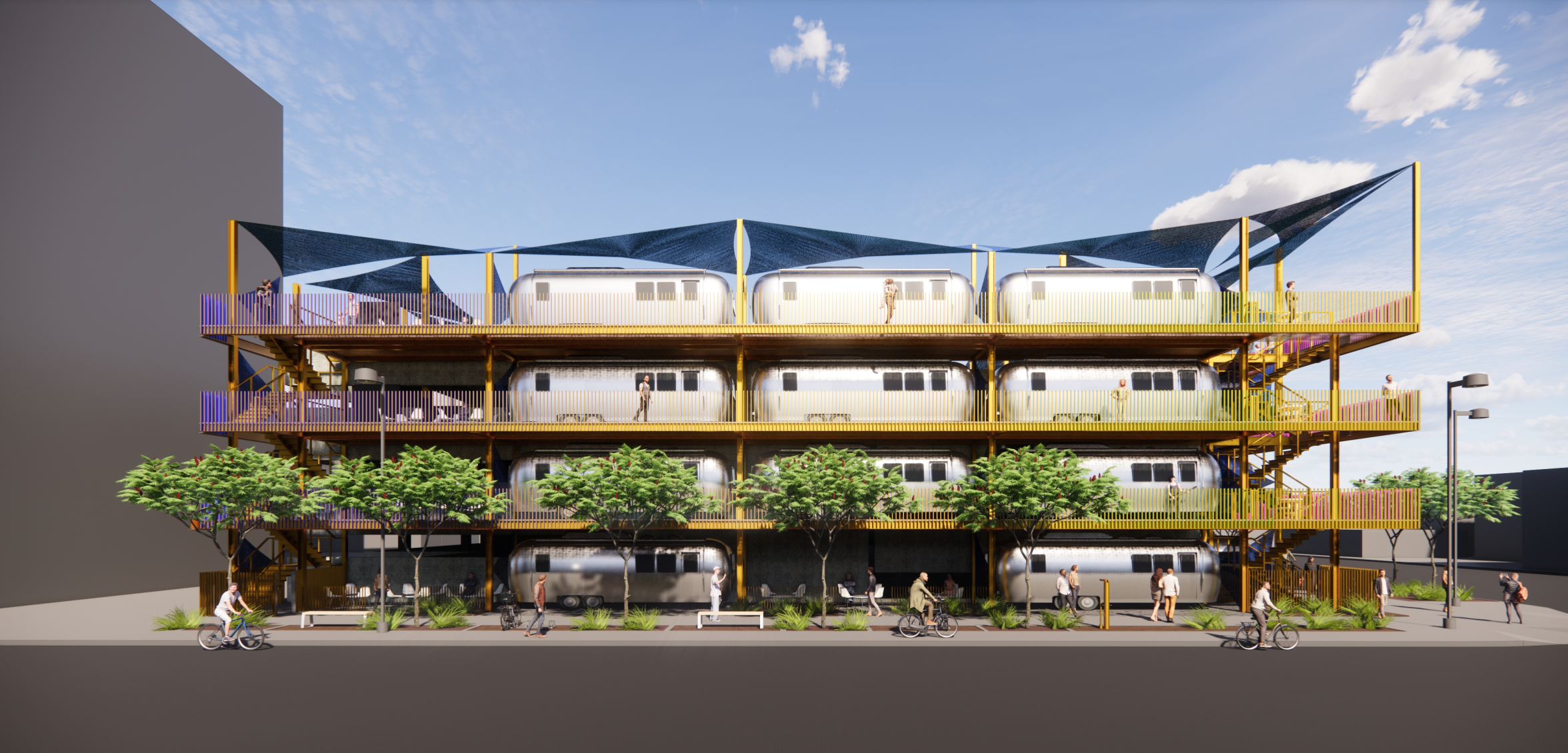 The Roosevelt Land Yacht Club will convert land surrounding a parking structure at First Street and Roosevelt into a unique, pedestrian-friendly and centrally located residential development catering to artists and creatives. This is no apartment complex — the preliminary concept for the Roosevelt Land Yacht Club is to integrate actual vintage travel trailers into a structure that’s half housing, half work of art.