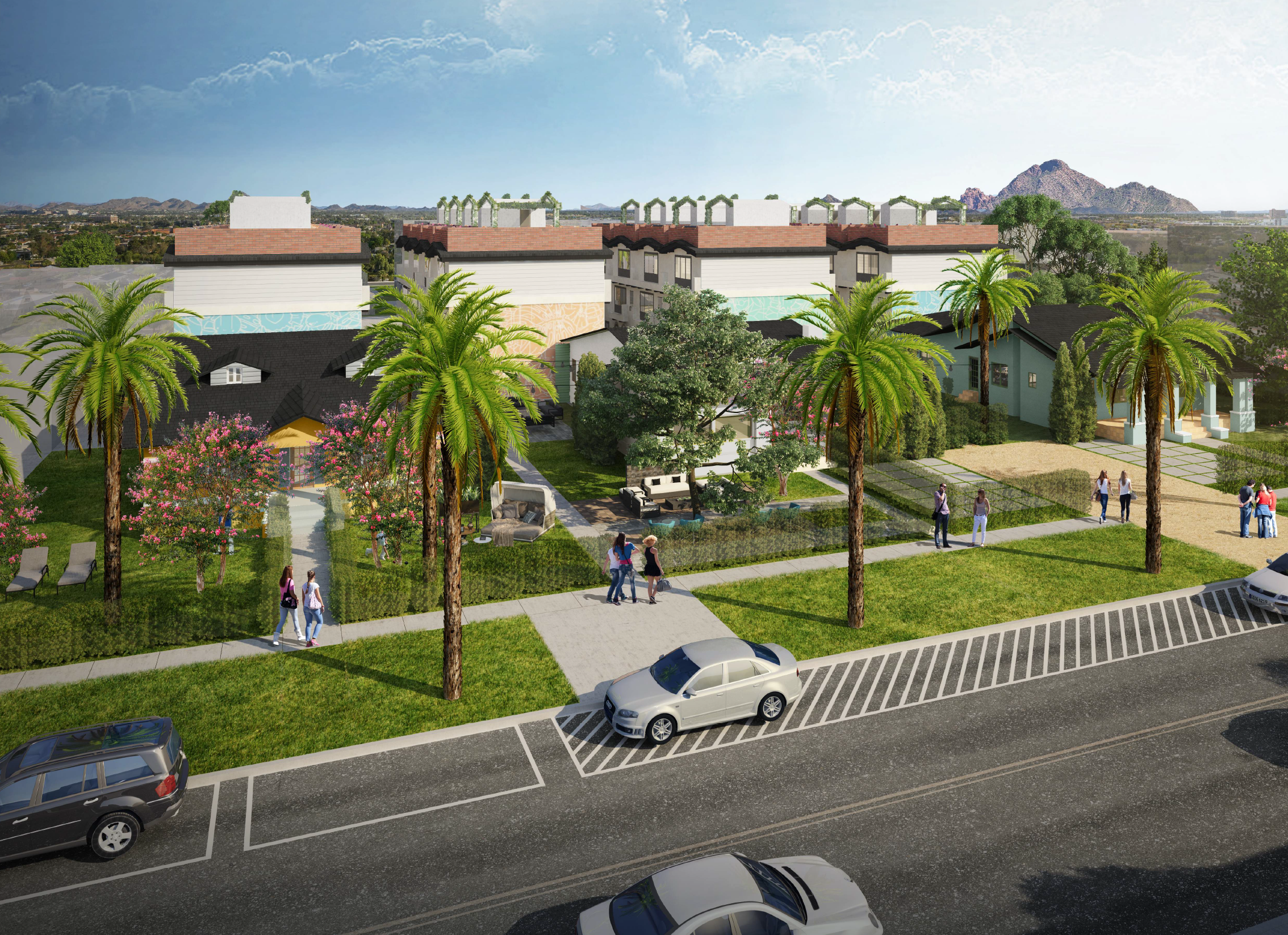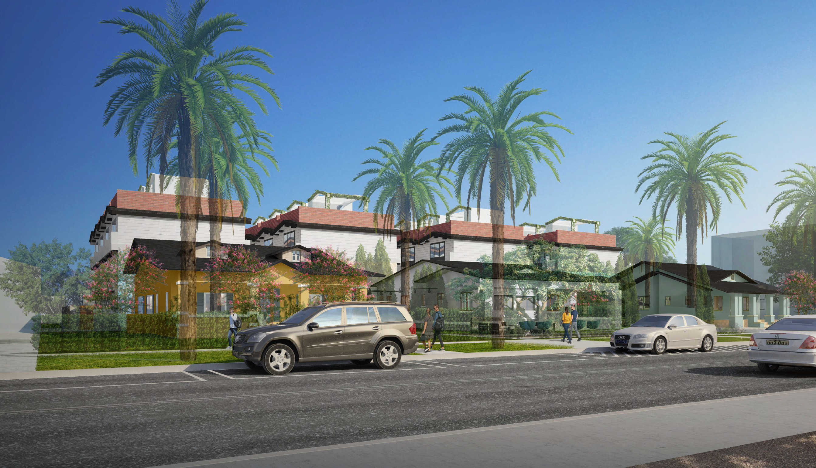 The property is 3 separate parcels that have been acquired by a True North affiliated entity. The project will consist of 32 units in four separate 3 story + rooftop buildings. The one-bedroom unit offers residents a private garden patio while the two-bedrooms townhomes + private rooftop decks.